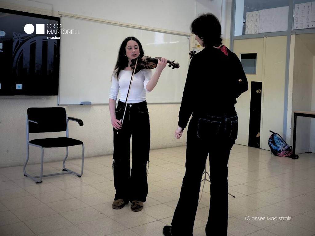 Tot seguit, els alumnes de batxillerat del centre van tenir l’oportunitat de rebre classes individuals, amb la participació activa de companys i companyes com a oients. Va ser un moment molt enriquidor, no només per a qui tocava, sinó també per a tot l’alumnat present, que va poder observar el seu enfocament tècnic, artístic i pedagògic.